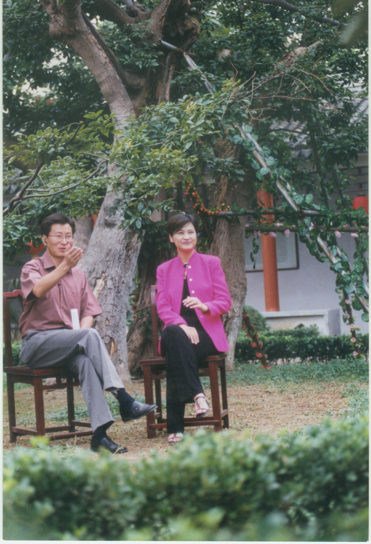 吳小莉和李昕在千年w66國際樹下主持活動